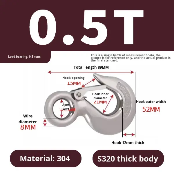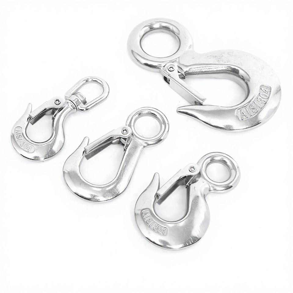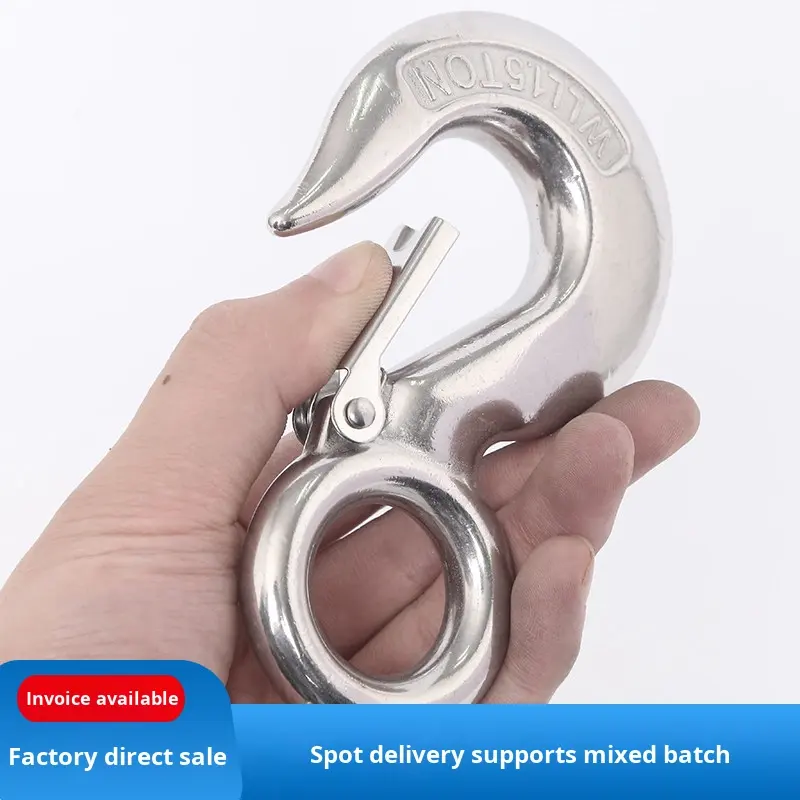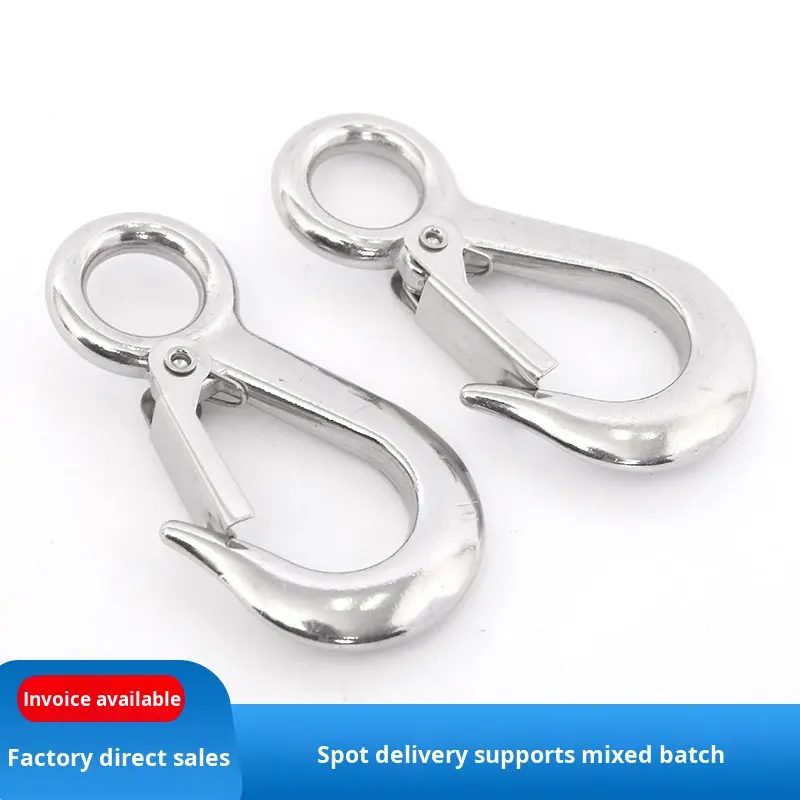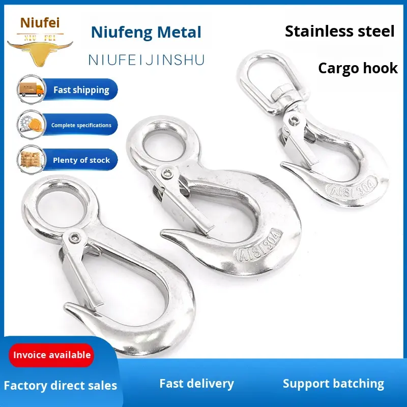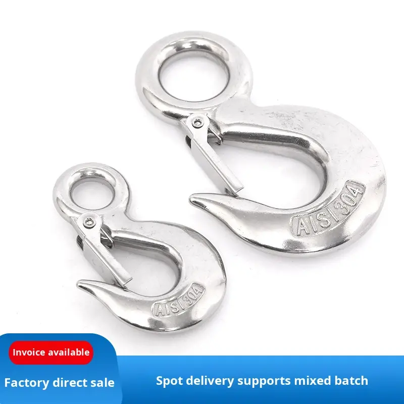 Crochet de levage en acier inoxydable 304, crochet de chargement, crochet à fourche directionnel, anneau rotatif, crochet de traction col de cygne à charge lourde, sans finition