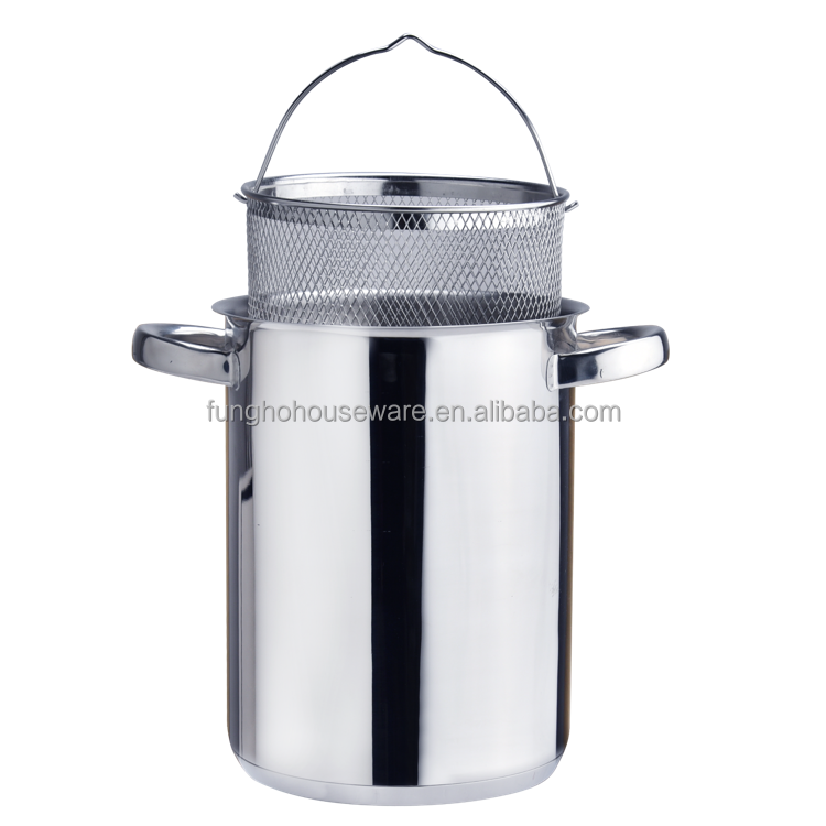 Marmite Profonde en Acier Inoxydable 304 avec Grille Filtrante, Passoire pour Asperges et Pâtes, Poêle à Frire, Marmite à Soupe et à Bouillon
