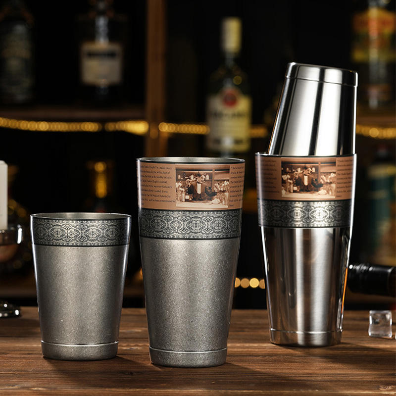 304 acier inoxydable gravé Boston Shakers mélangeur américain avec Chaplin motif Chevron Cocktail Shake pour Bar