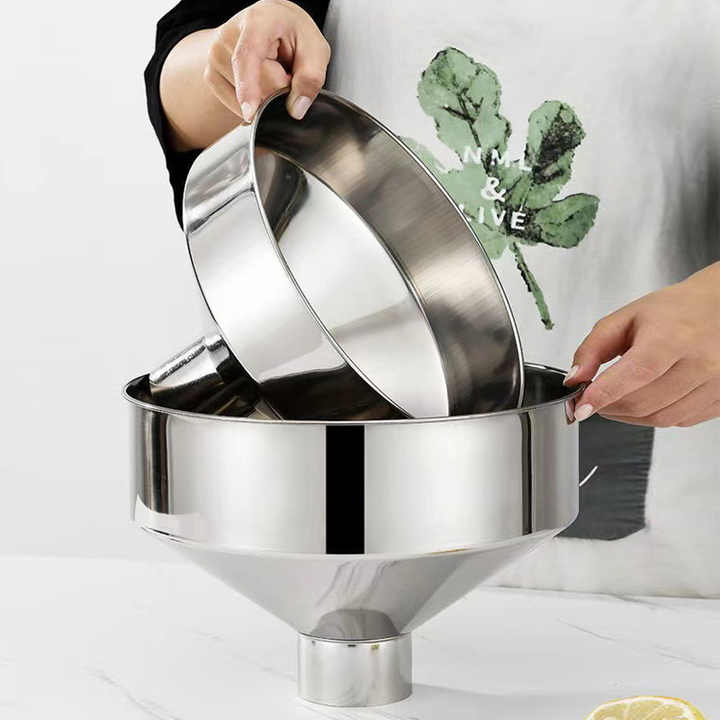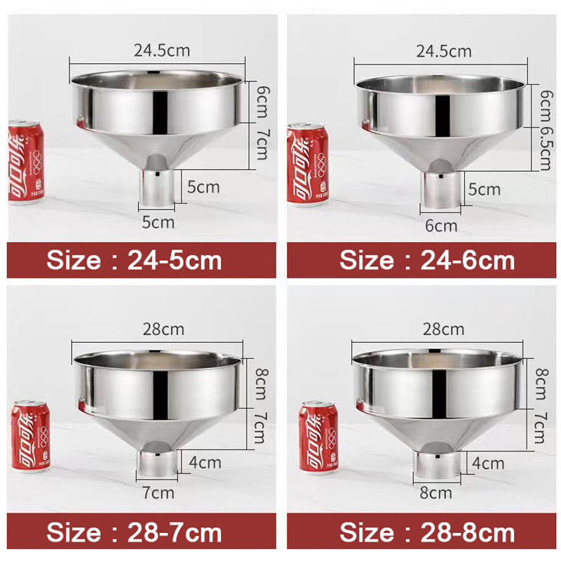 Entonnoir en acier inoxydable 304 de très grand diamètre, épaissi, à large ouverture, pour huile, vin, carburant