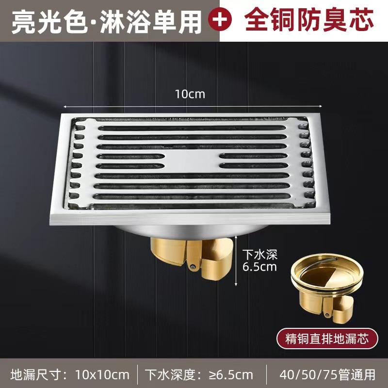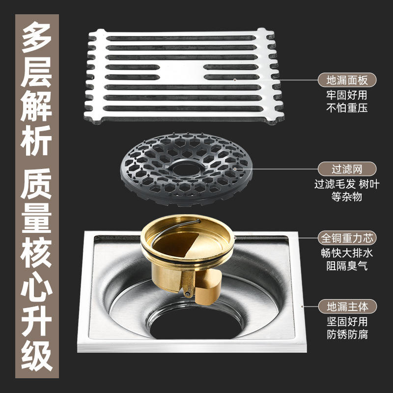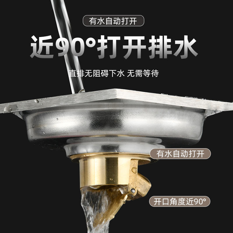 Pure Music 304 Stainless Steel Floor Drain Thickened Large Displacement Shower Room Bathroom Deodorizing Feature 75mm Water Seal