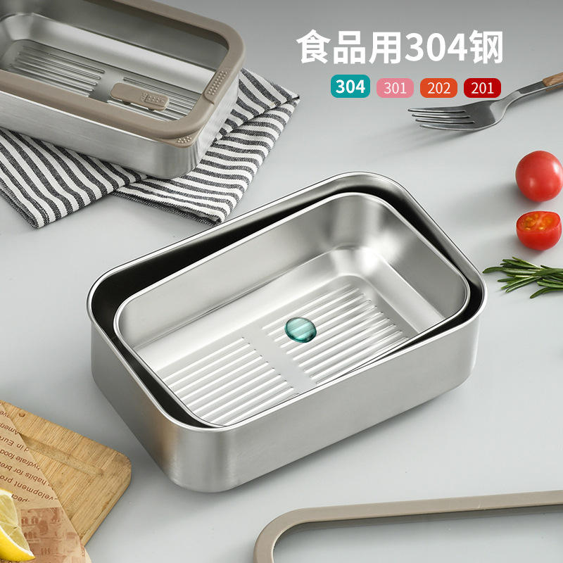 Boîte de conservation alimentaire en acier inoxydable 304, rectangulaire, avec couvercle hermétique, boîte à lunch, utilisation domestique, réfrigérateur