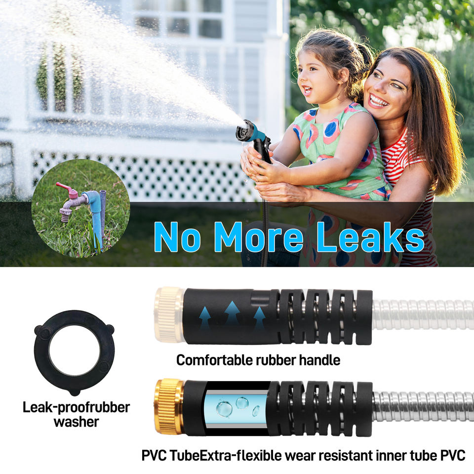 304 Stainless Steel Garden Hose Lightweight Kink-Free Crush-Resistant Fittings Easy Coil Coiling Flexible Water Hose Reel