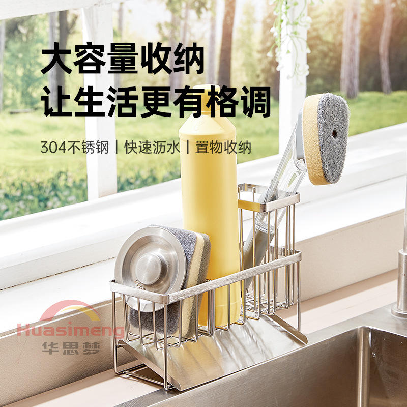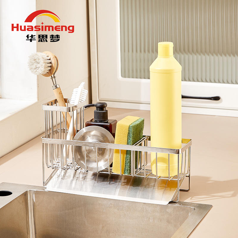 Égouttoir d'évier de cuisine en acier inoxydable 304 avec support pour éponge, rangement sur comptoir pour séchage rapide, utilisation polyvalente