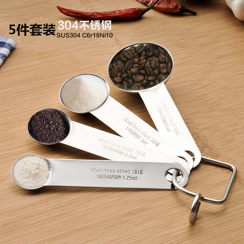Ensemble de cuillères à mesurer en acier inoxydable 304, 5 pièces, pour la cuisine, la pâtisserie, le café, le lait en poudre, les assaisonnements, qualité alimentaire