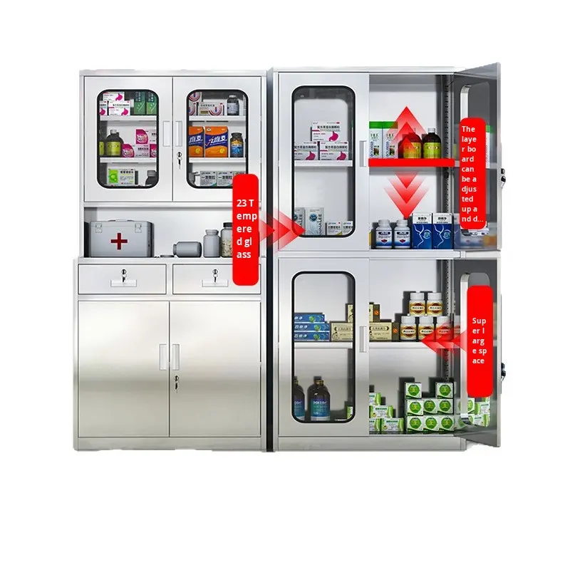 Armoire à médicaments multifonctionnelle en acier inoxydable 304, design moderne, pour pharmacie, clinique, hôpital, origine Chine