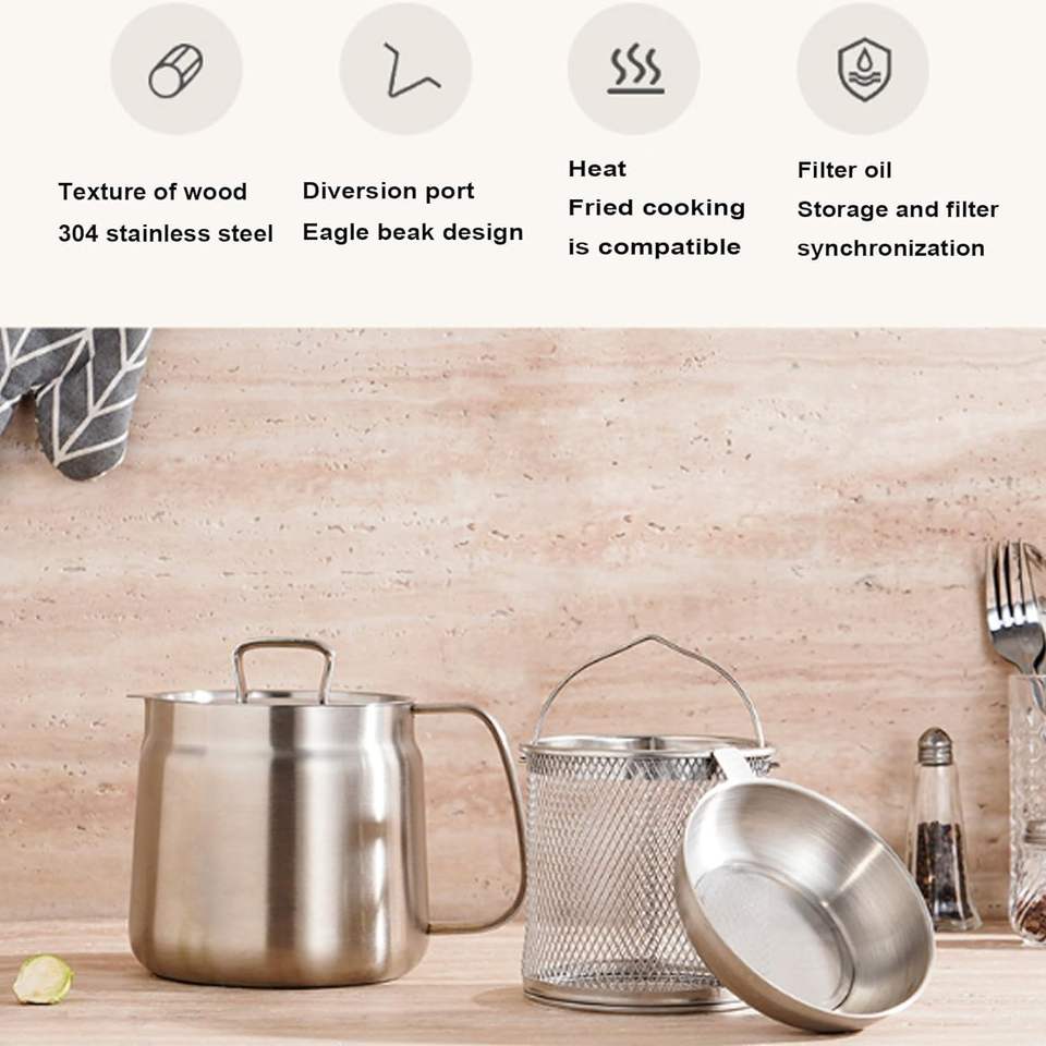 Pot de filtre à huile en acier inoxydable 304 grande capacité récipient de graisse de bacon HEAVY DUTY réservoir de filtre à huile multifonctionnel