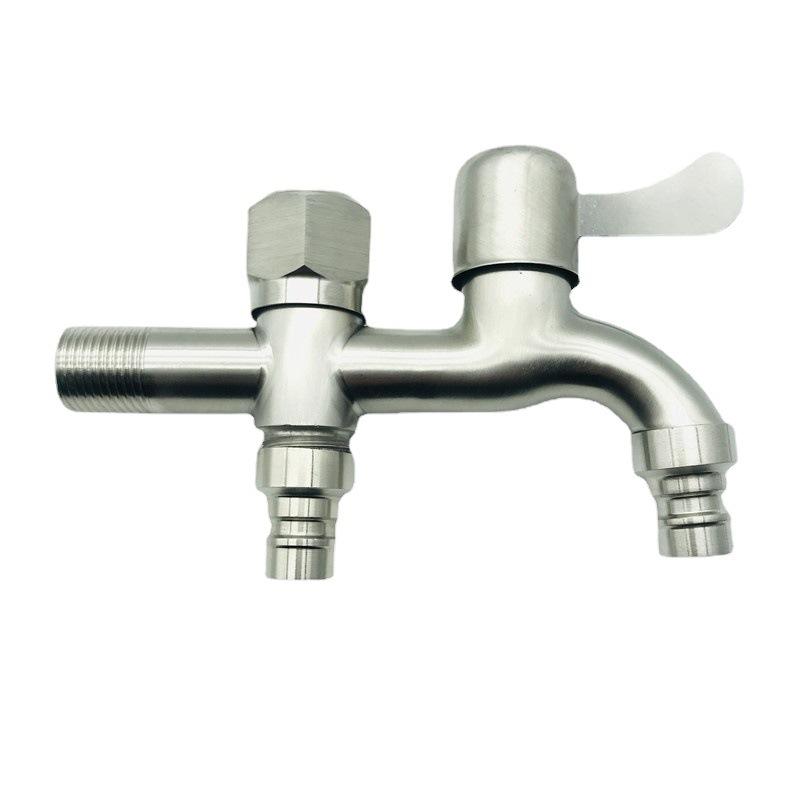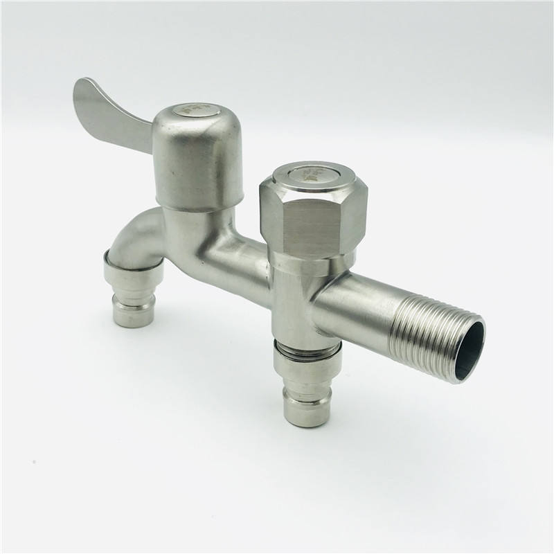Robinet de cuisine à trois voies à une entrée et deux sorties en acier inoxydable 304 brossé Water Knows Warmth, à encastrer, double usage pour machine à laver