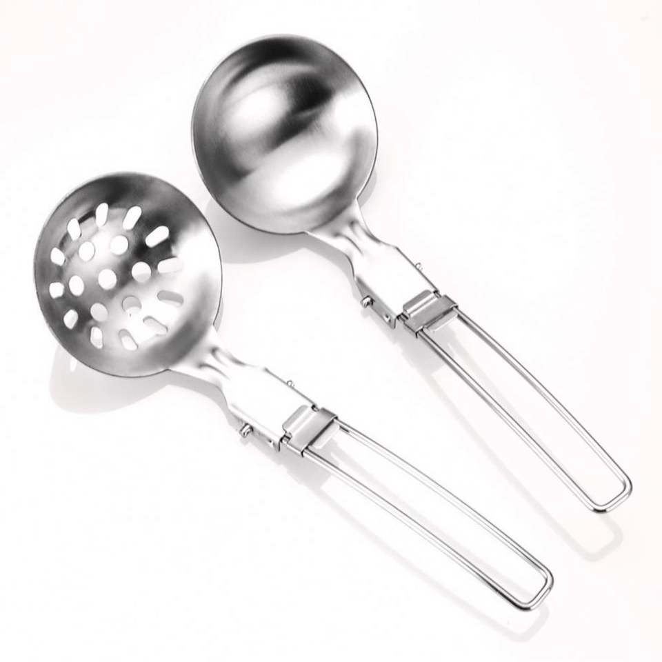 Ustensiles de cuisine portables en acier inoxydable 304 pour pique-niques en plein air Camping Remuer Friture Spatule Pot Vaisselle pliante Camping en plein air