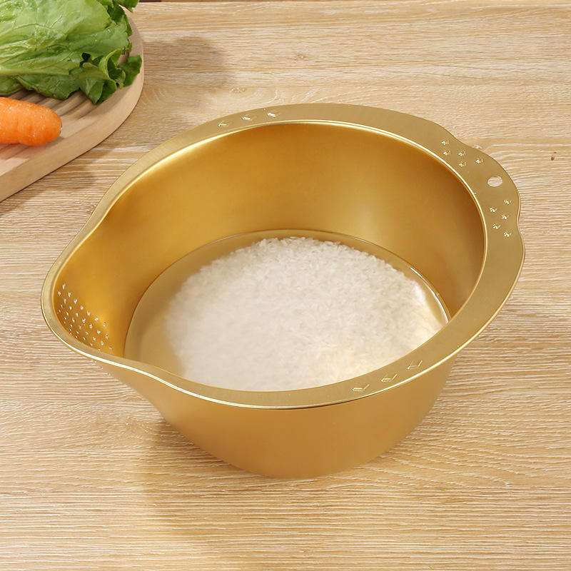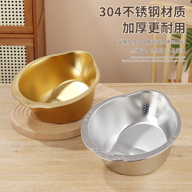 304 Stainless Steel Rice Washing Basin Colander Drainer Kitchen Vegetable Strainer Silver Gold Color
