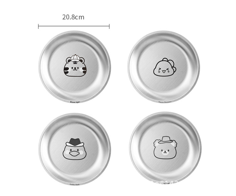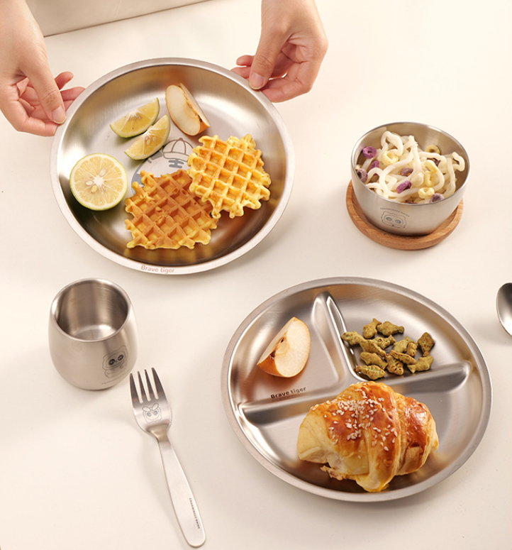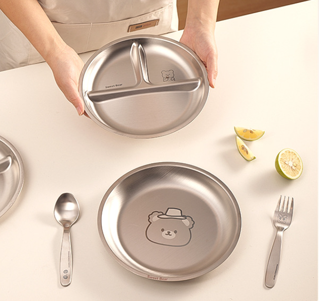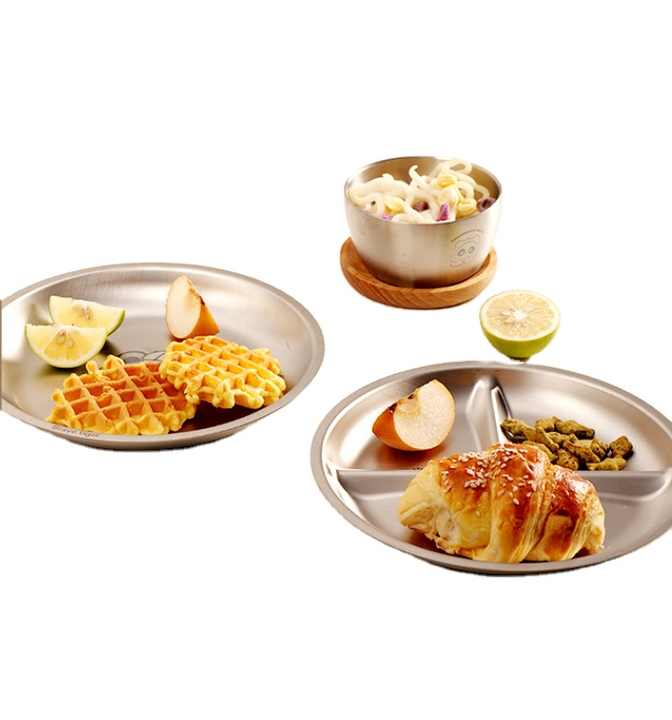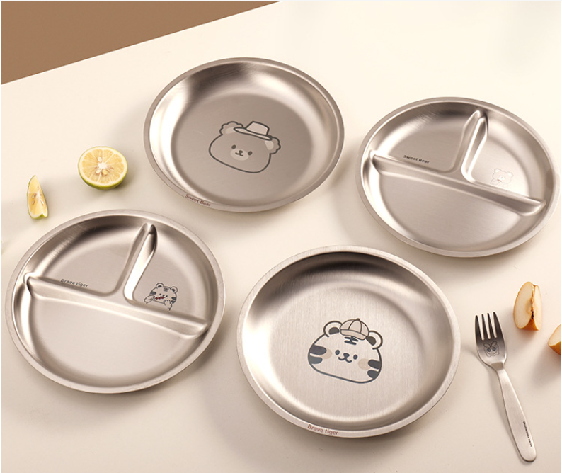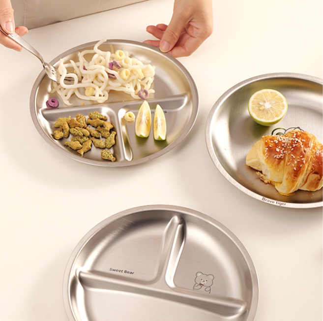 304 plaque ronde en acier inoxydable maternelle enfants division épaisse vaisselle étudiant salle à manger trois assiettes