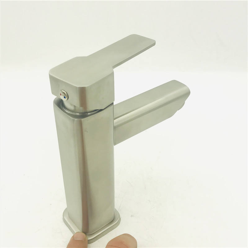 Robinet de lavabo double en acier inoxydable 304 de type piédestal, chaud et froid, brossé, pour usage domestique, scolaire et en salle, direct