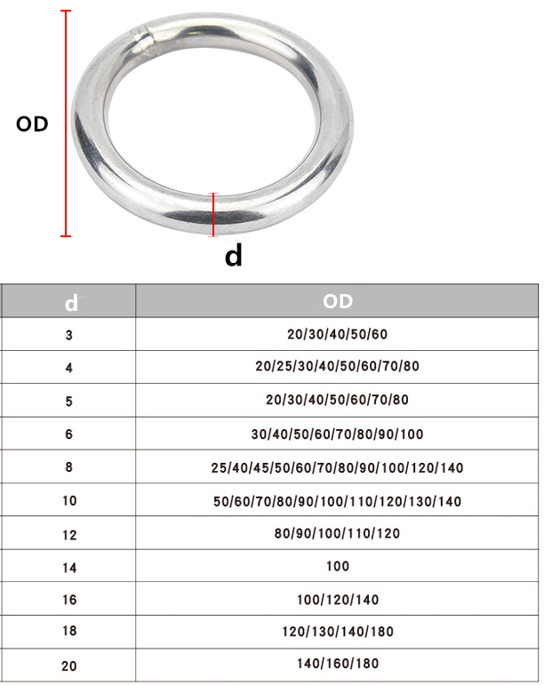 Joints toriques ronds soudés sans soudure en acier inoxydable 304: poly-sac + carton