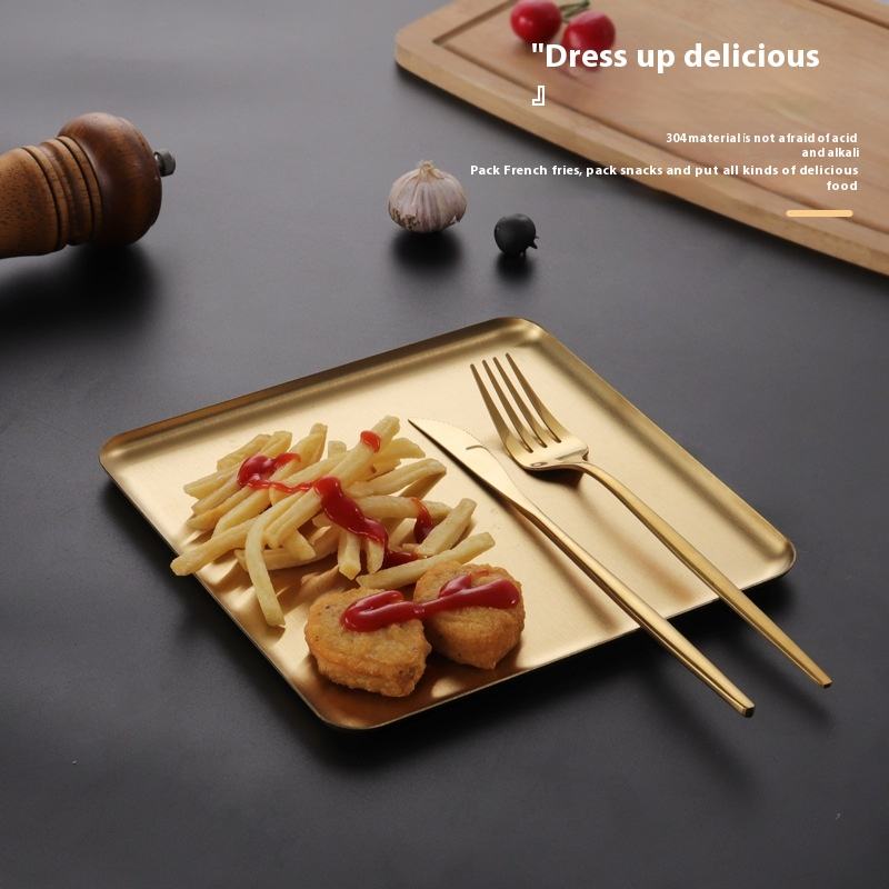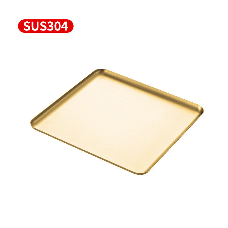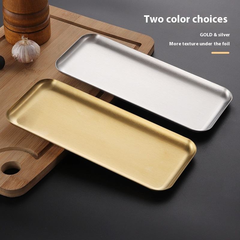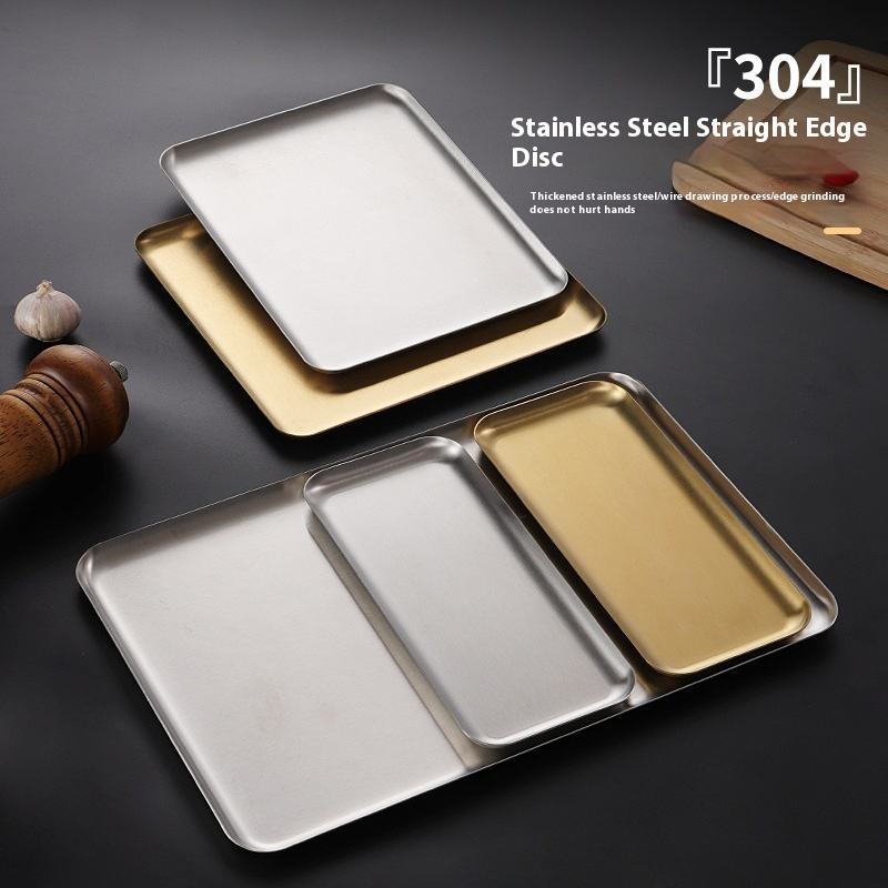 304 Plaque carrée en acier inoxydable avec bord droit Style coréen Barbecue Préparation des aliments Golden Snack Jewelry Plat de service