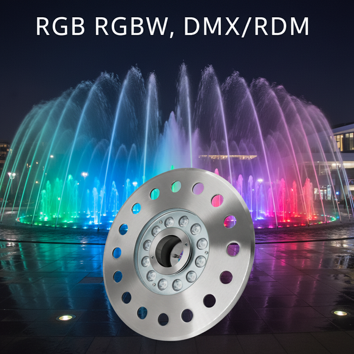 Lampe LED sous-marine en acier inoxydable 304 pour piscine et fontaine avec indice de protection IP68 et contrôle DMX512