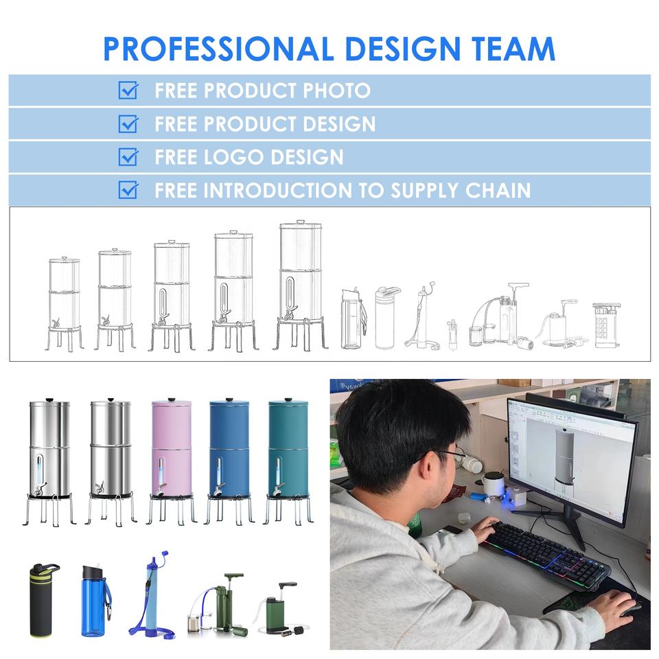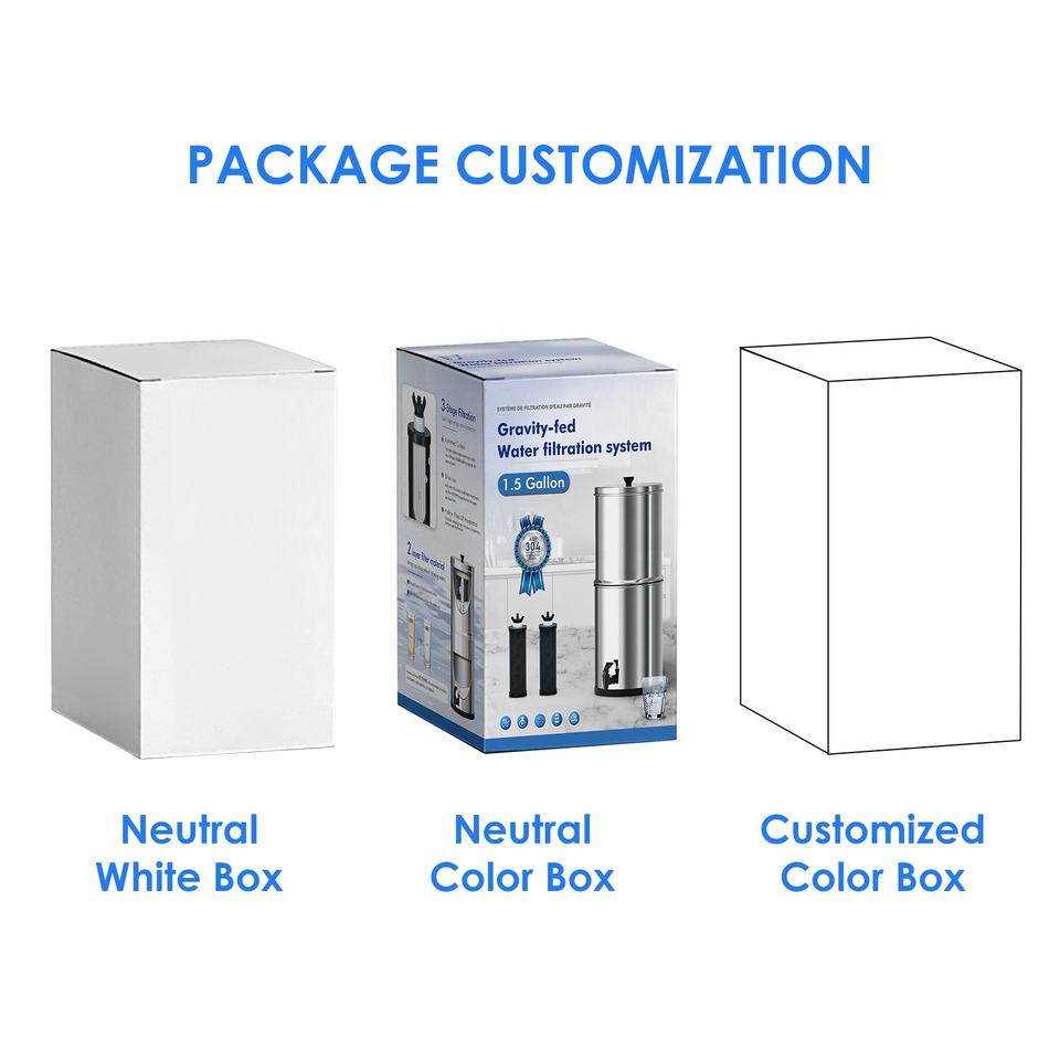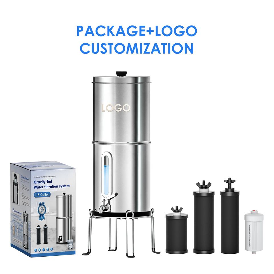 Système de Filtration d'Eau par Gravité en Acier Inoxydable 304 Éliminant Fluorure, Chlore et Bactéries