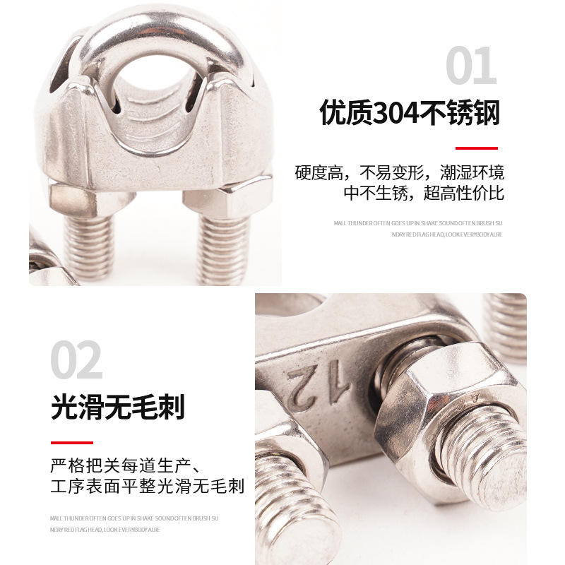 Serre-câble en acier inoxydable 304, boucle en forme de U métrique de 10 mm pour la fixation des câbles