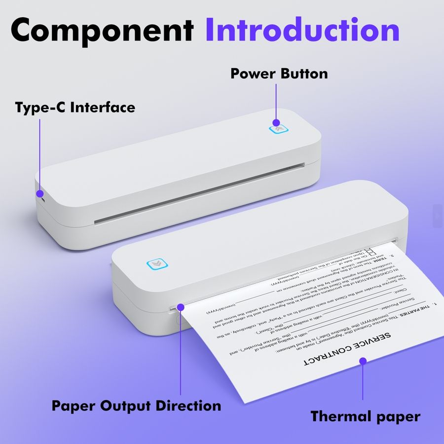 Imprimante de documents 304 DPI, imprimante thermique sans encre Bluetooth A4 pour IOS, Android, MAC, Windows, imprimante à transfert thermique, contrats