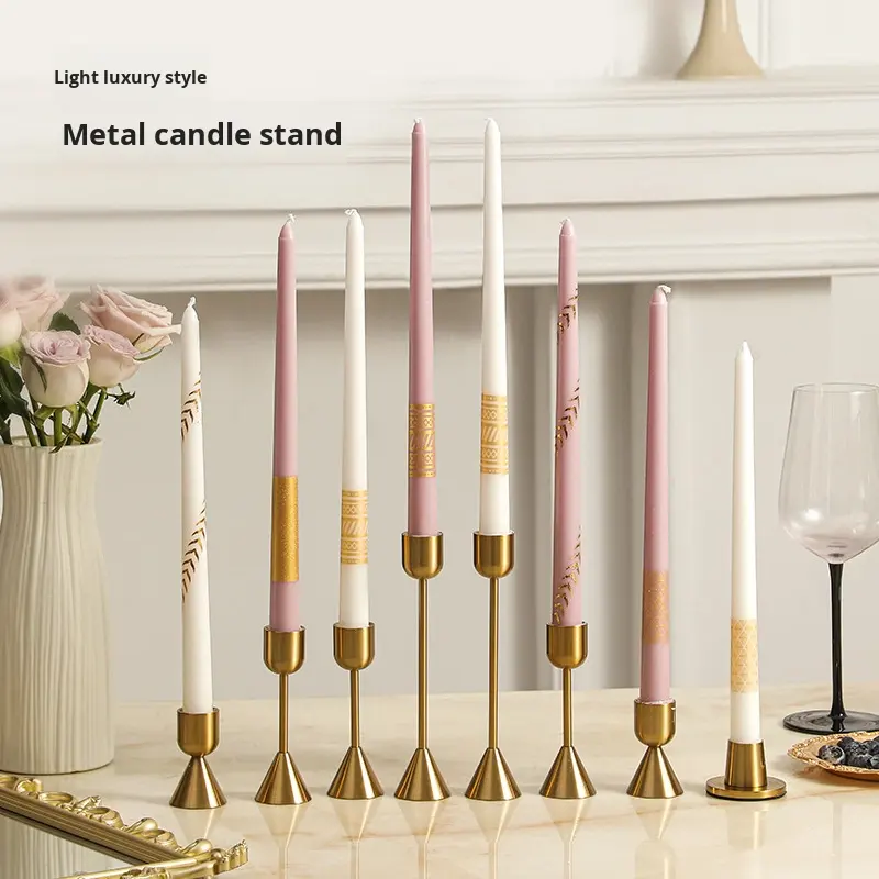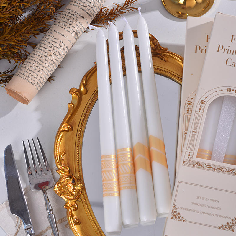 Bougie pilier dorée en cire de paraffine sans fumée, style luxe, pour dîner aux chandelles de mariage, 30CM 25CM, noir et or, longue tige, lot de 2