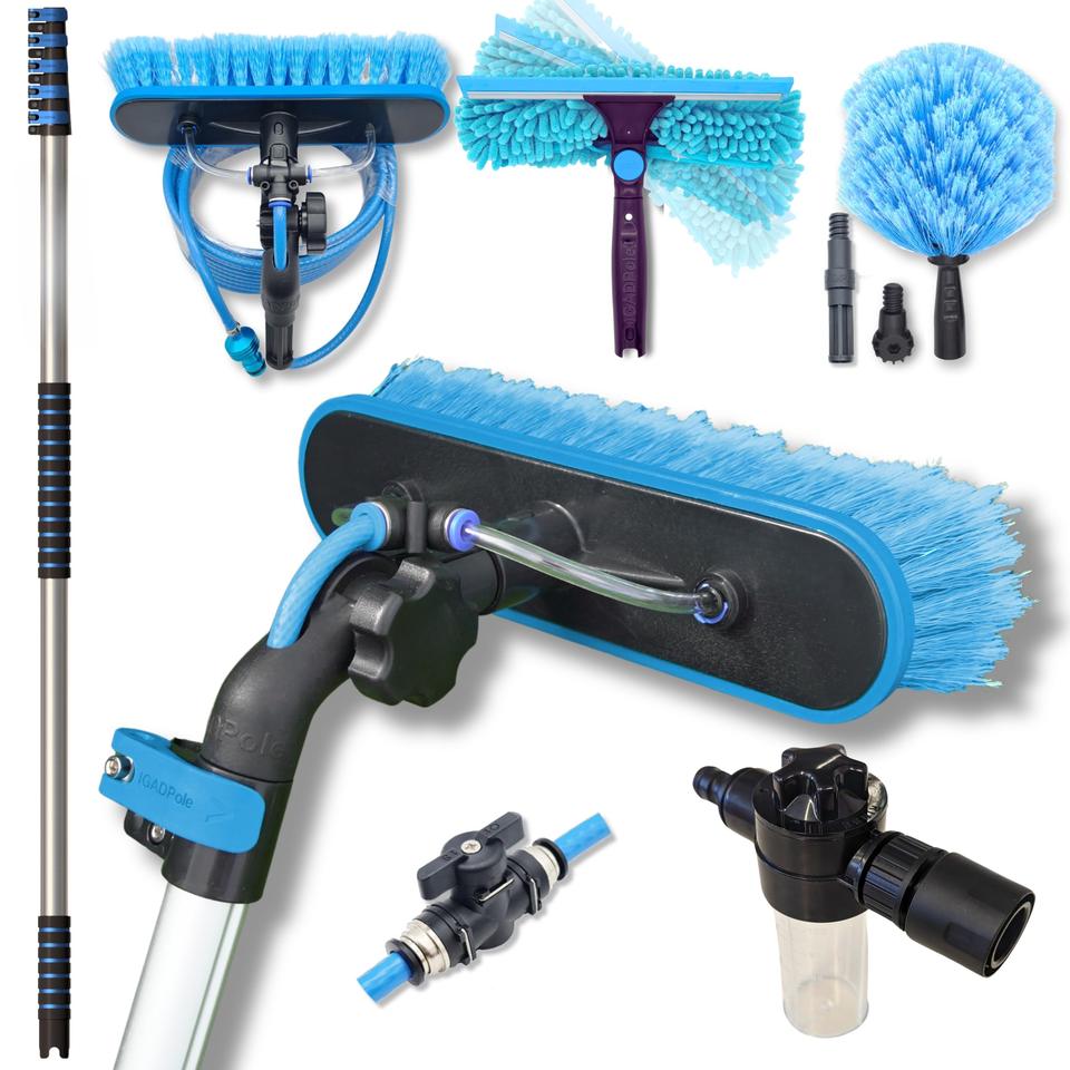 Kit de nettoyage de fenêtres télescopique de 30 pieds, outil efficace de lavage de fenêtres à panneaux solaires avec perche alimentée en eau, brosse solaire, outil de 9 m