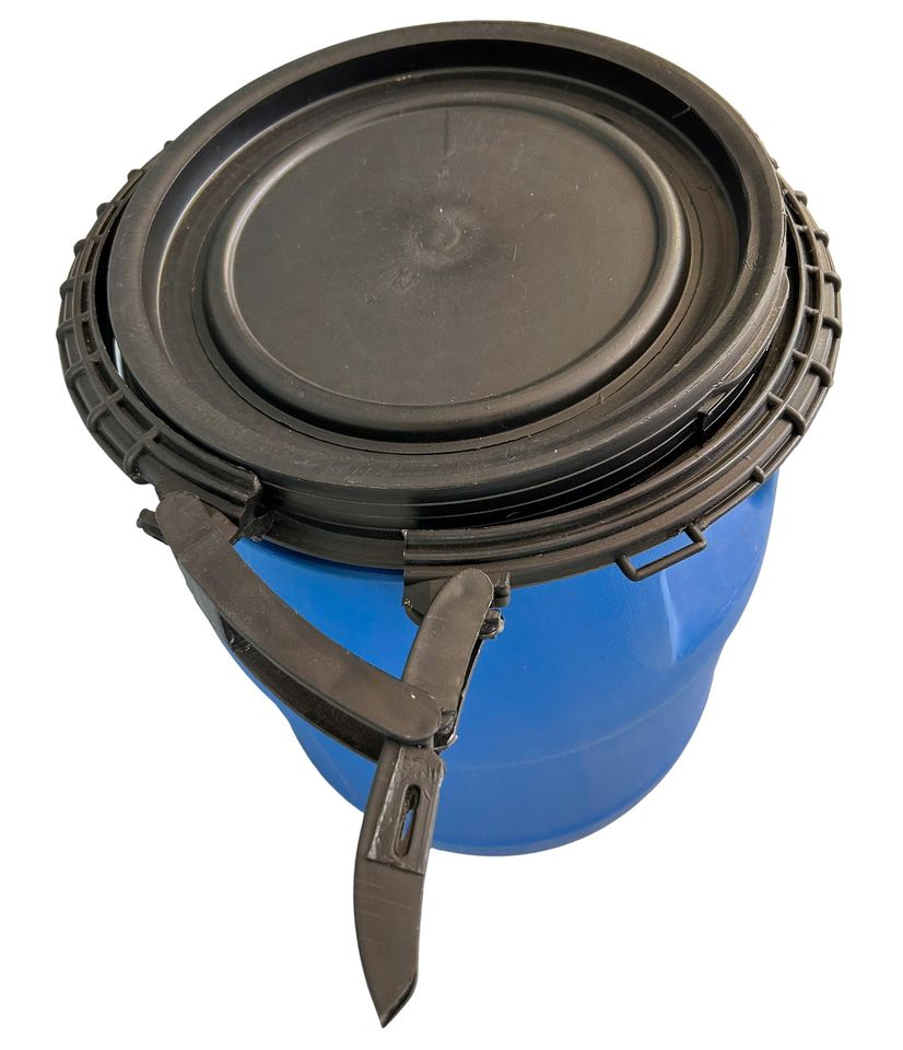 Fût en plastique HDPE de qualité alimentaire durable de 30 L – Fût bleu avec anneau de verrouillage, recyclable, étanche pour le stockage de liquides