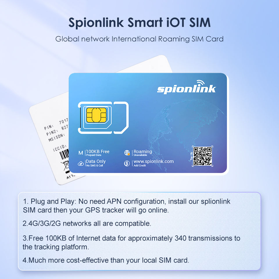 Spionlink carte SIM M2M IoT 4G LTE Cat1/3G/2G (nano/micro/standard), roaming mondial, 30 Mo/mois, 50 SMS/an, val. 1 an, 1 unité