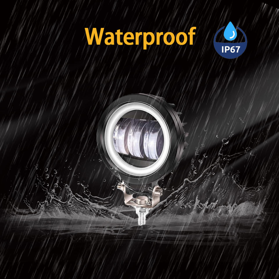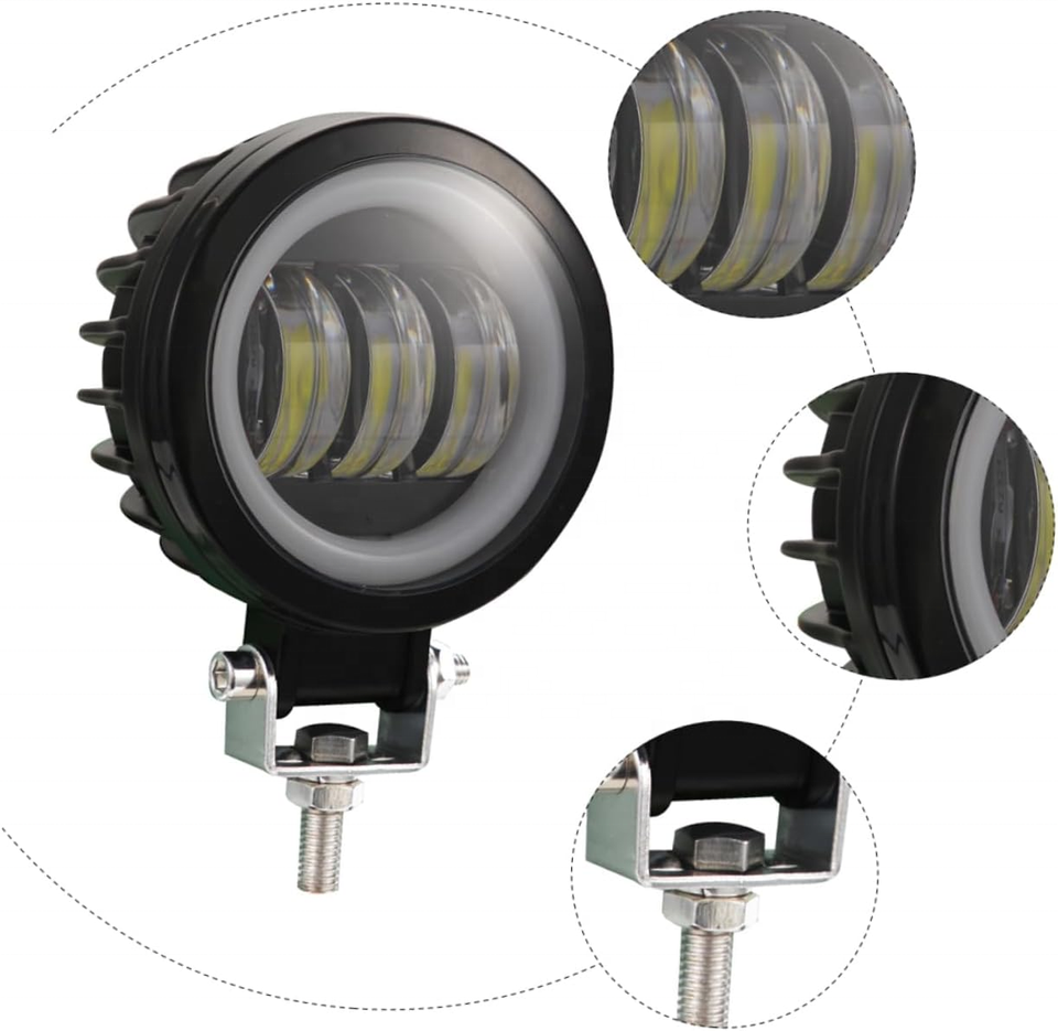 Projecteur de phare de moto 30W 3 pouces avec œil d'ange blanc pour conduite de scooter lumière du jour pour camion RV SUV Offroad