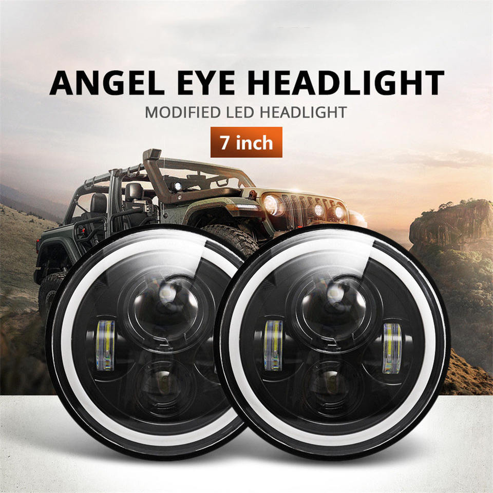 Phare LED 30W 7 pouces, faisceau haut/bas, 6000lm, 12V, H4, montage universel, éclairage de travail LED, phares ronds tout-terrain pour moto
