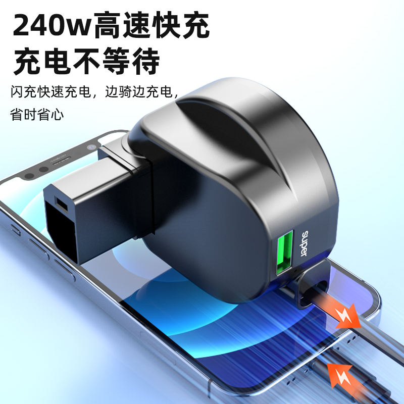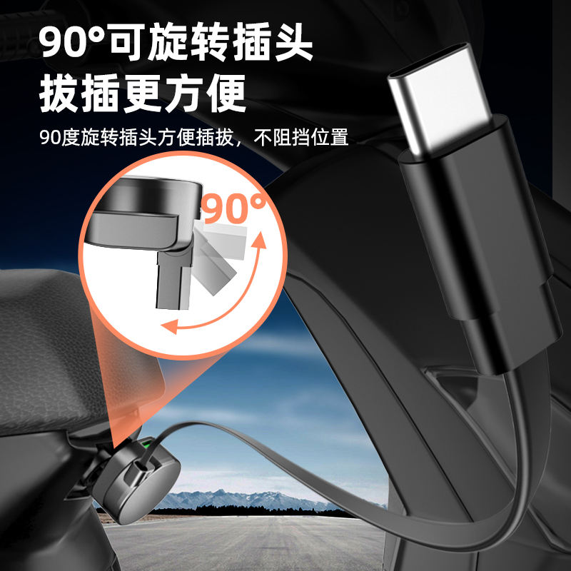 Chargeur de téléphone pour vélo électrique à charge rapide 30W, chargeur USB pour vélo électrique avec câble de type C rétractable de 1,4 mètre