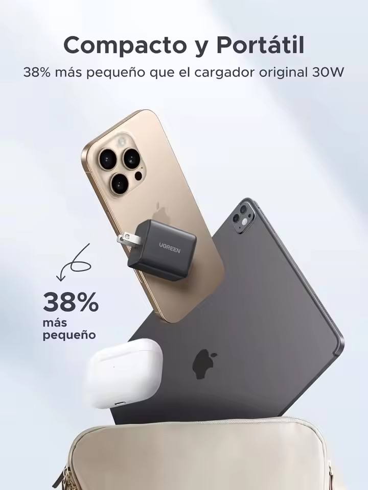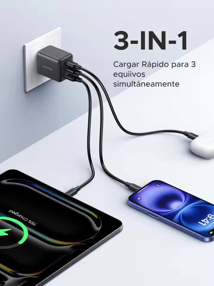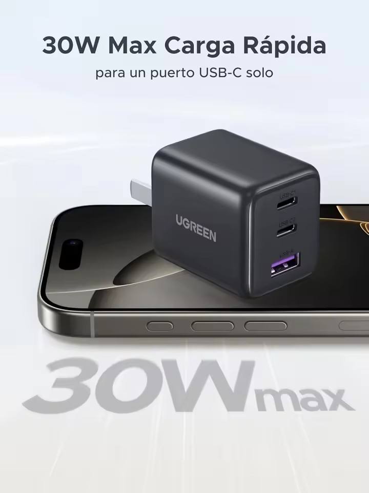 Chargeur mural rapide UGREEN GAN 30W Type C USB 3 ports (2C1A) pour Samsung Galaxy S25/S24 iPhone 17 16
