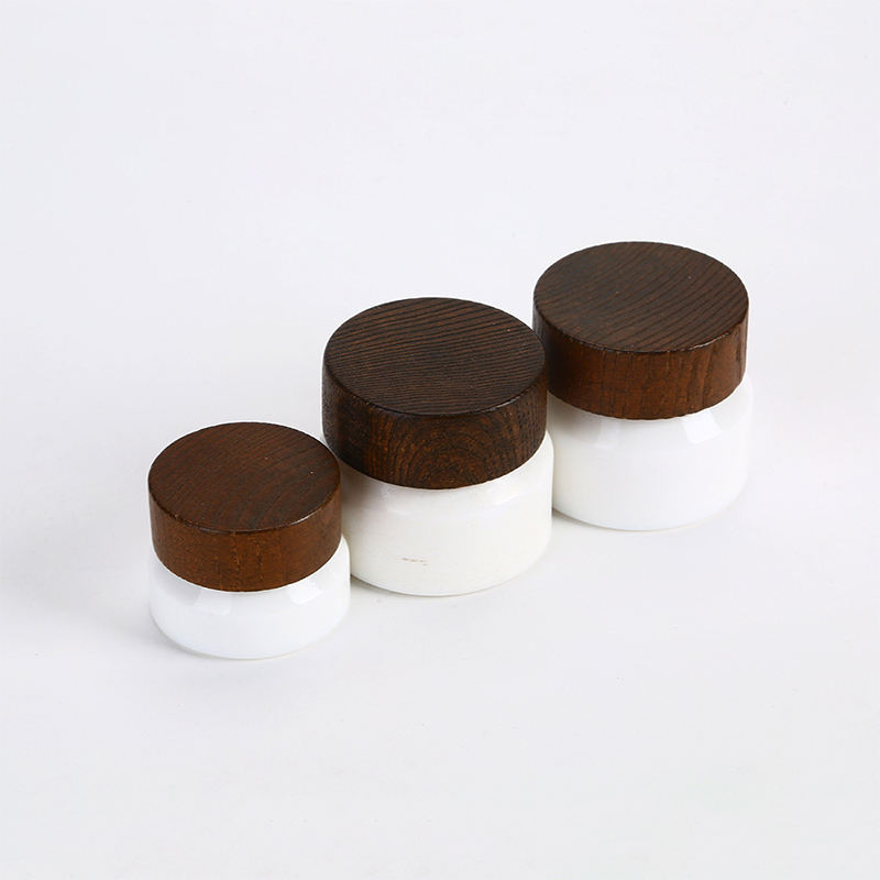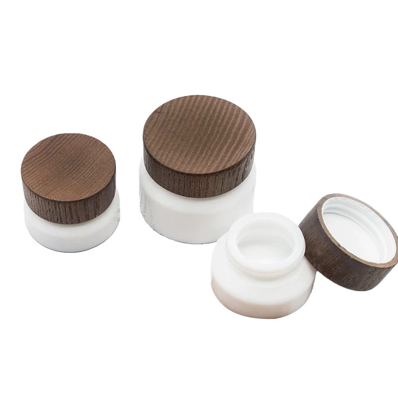 30g 50g White Wooden Cosmetic Packaging Container with Frosted Clear Face Cream Jar Bamboo Lid Rectangle Shape Modern Style