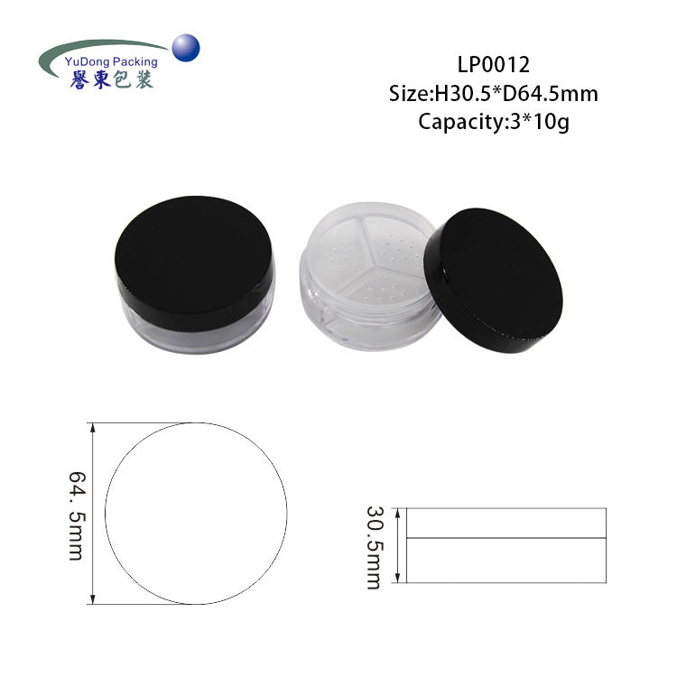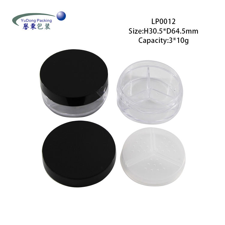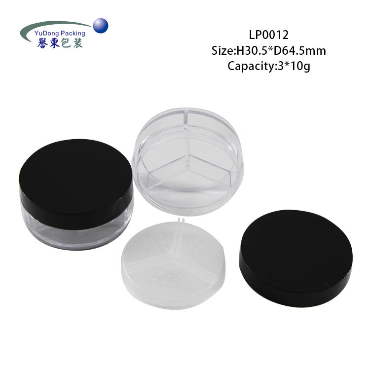 Pot d'emballage vide en plastique ABS de 30g pour correcteur de maquillage 3 cavités Conteneur cylindrique pour poudre libre Logo personnalisé Petit coffre-fort à transporter