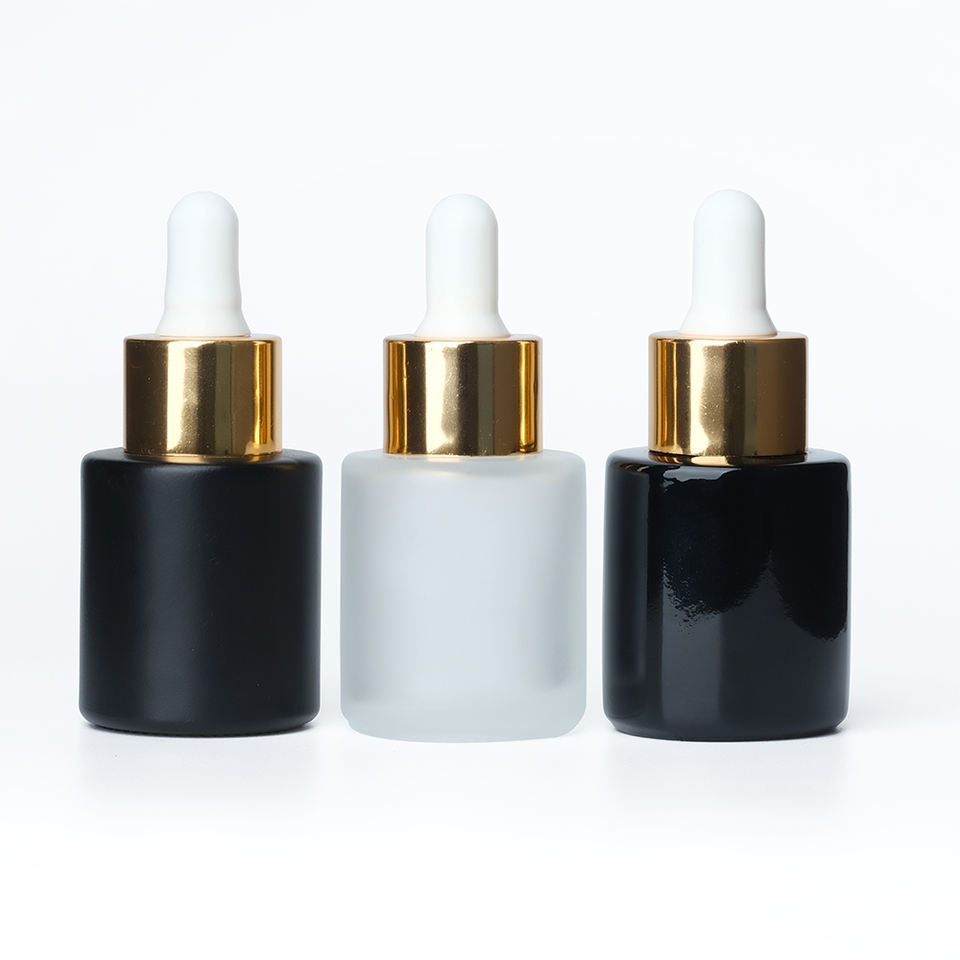 Flacon compte-gouttes en verre ambré transparent de 30 ml à épaule plate pour huiles essentielles avec compte-gouttes blanc/noir