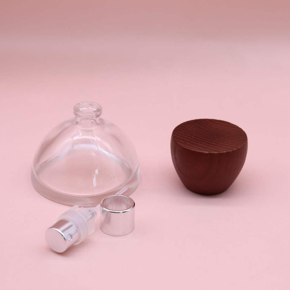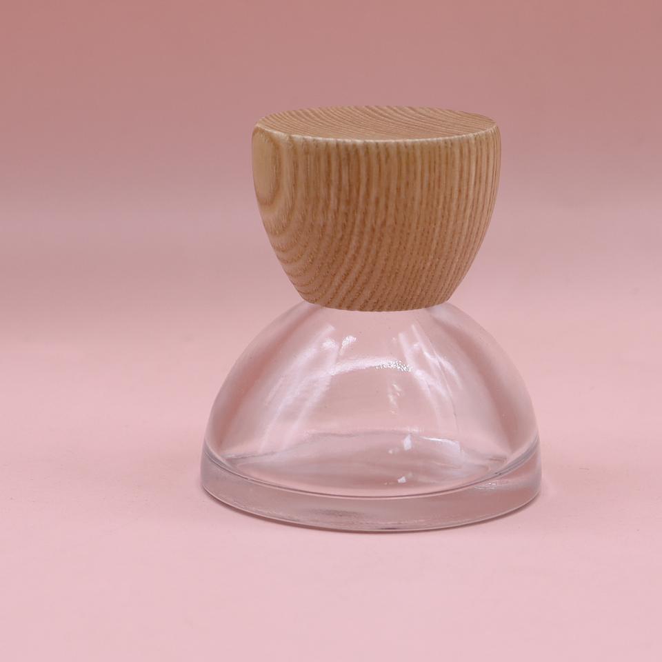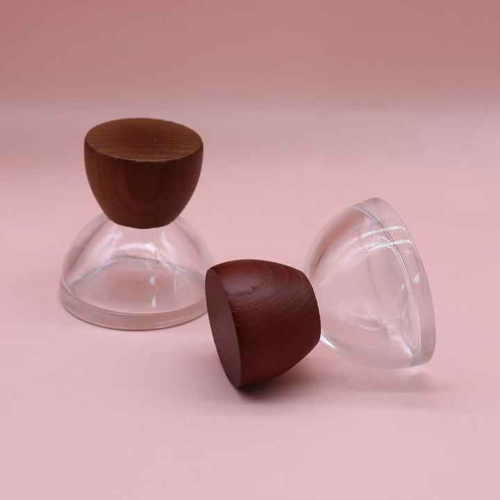 Flacon en verre de parfum de 30ml avec capuchon en bois de noyer en forme de cône pour crème pour le visage