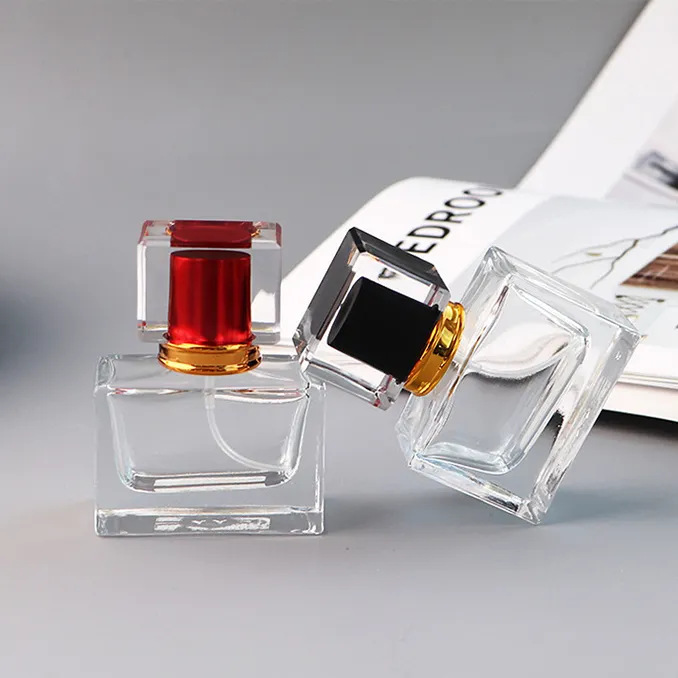 30ml Transparent de haute qualité faible quantité de commande carré Transparent verre vaporisateur de parfum bouteille vide cosmétiques bouteilles de parfum