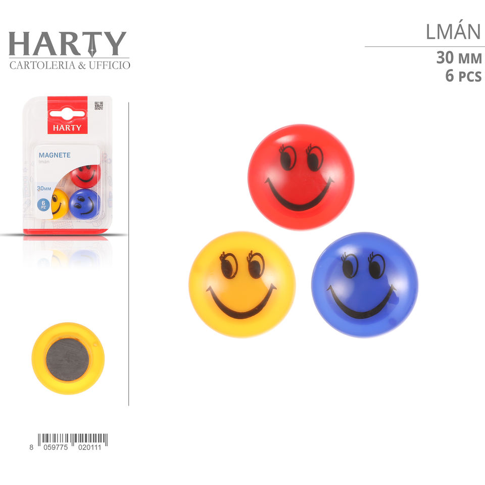 30mm Smiley Face Magnetic Buckle 6pc Plastic Office Accessory
