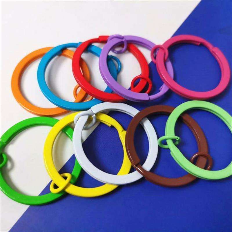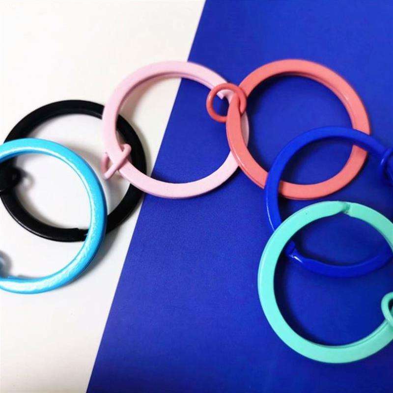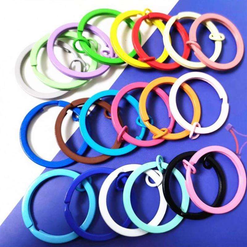 Porte-clés coloré de forme ronde fendue de 30mm, chaîne à anneau plat de couleur unie, accessoires pour porte-clés