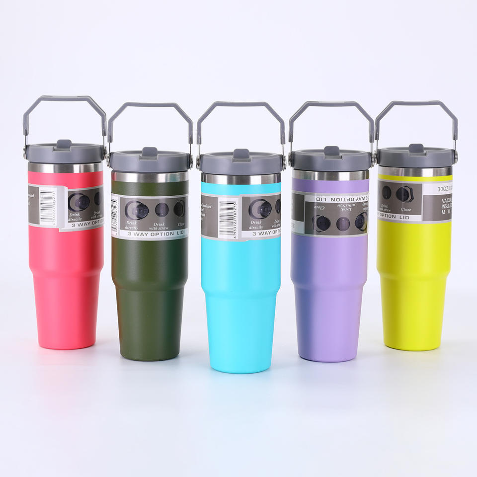 Gobelet isotherme en acier inoxydable de 30 oz avec poignée et paille, pour le sport, les voyages et le fitness