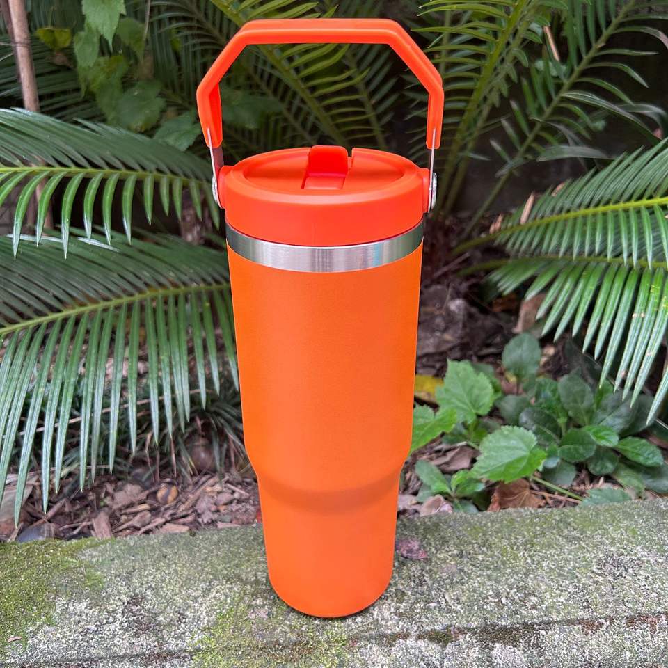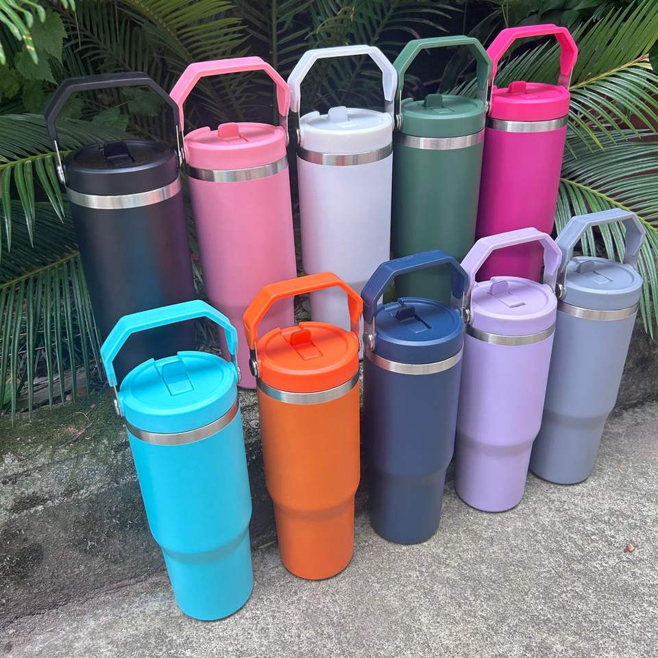 30oz Stainless Steel Insulated Tumbler Double Wall Vacuum Travel Straw Mug with Colorful Handle