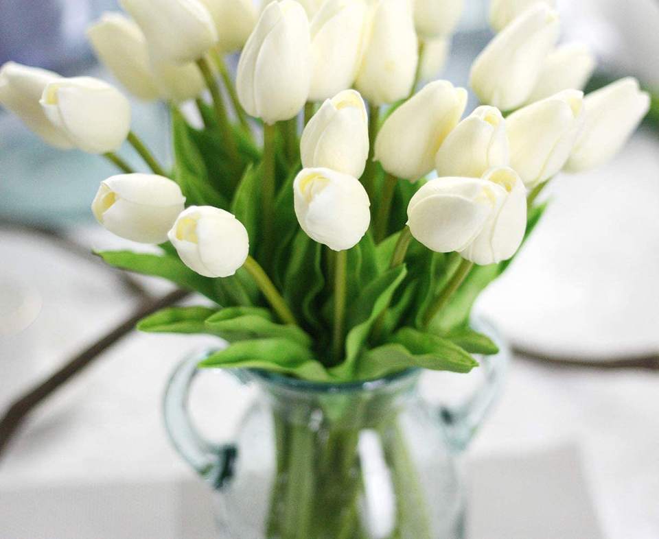Bouquet de fleurs artificielles tulipes blanches, 10/30 pièces, véritables Touch, fleurs PU, fleurs en Latex pour mariage