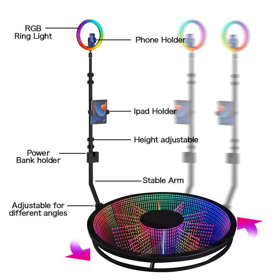 Photobooth 360° portable en verre personnalisé avec LED Infinity de 80 cm (31,5 pouces) pour événements et fêtes