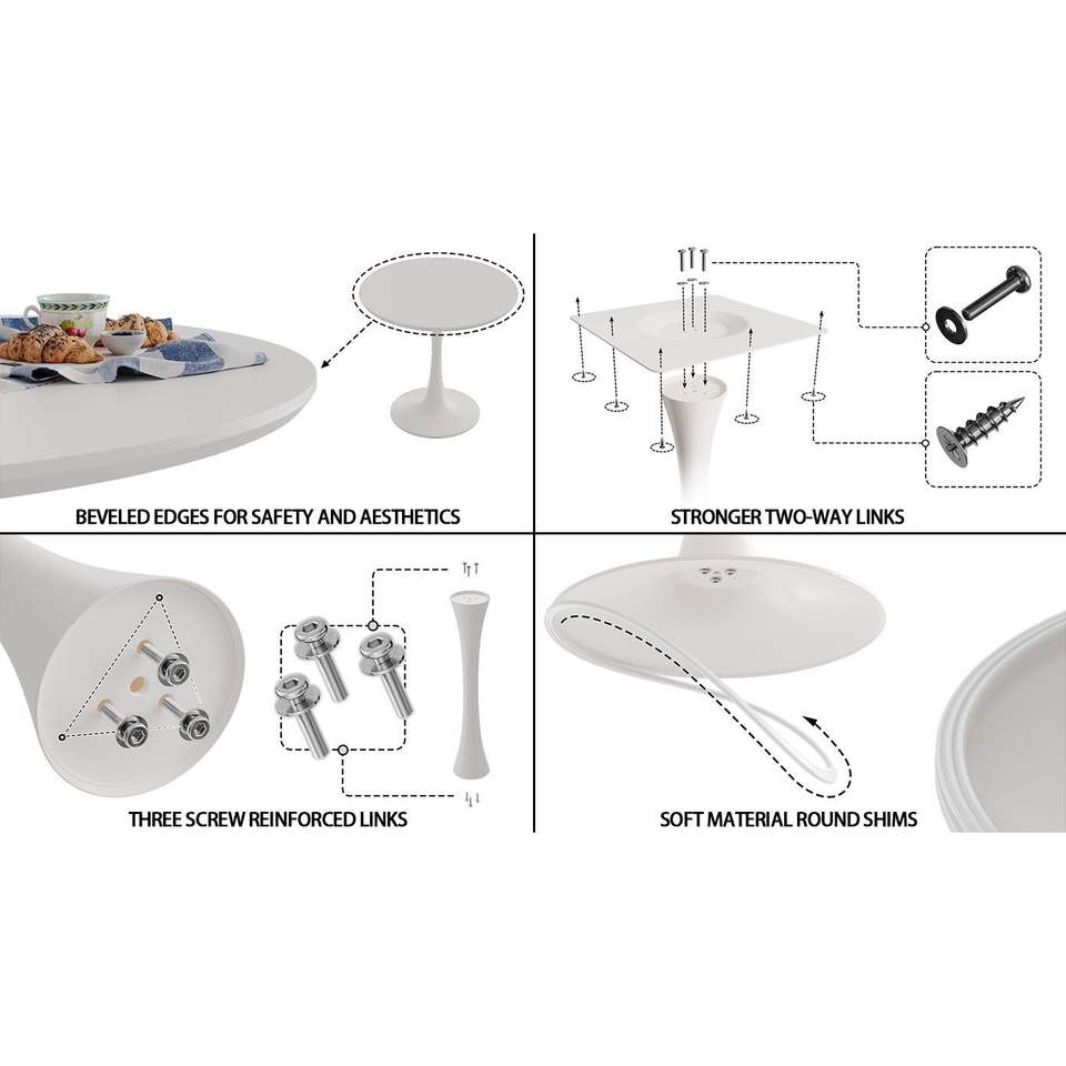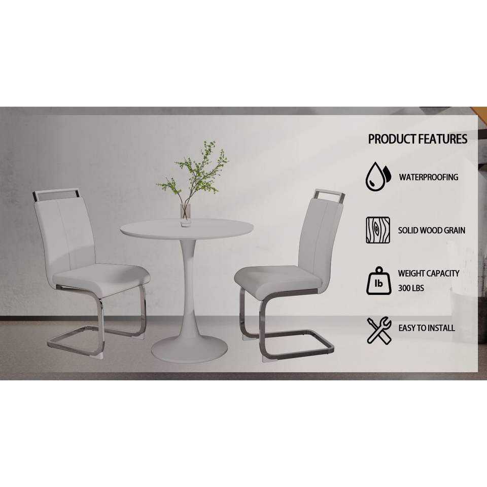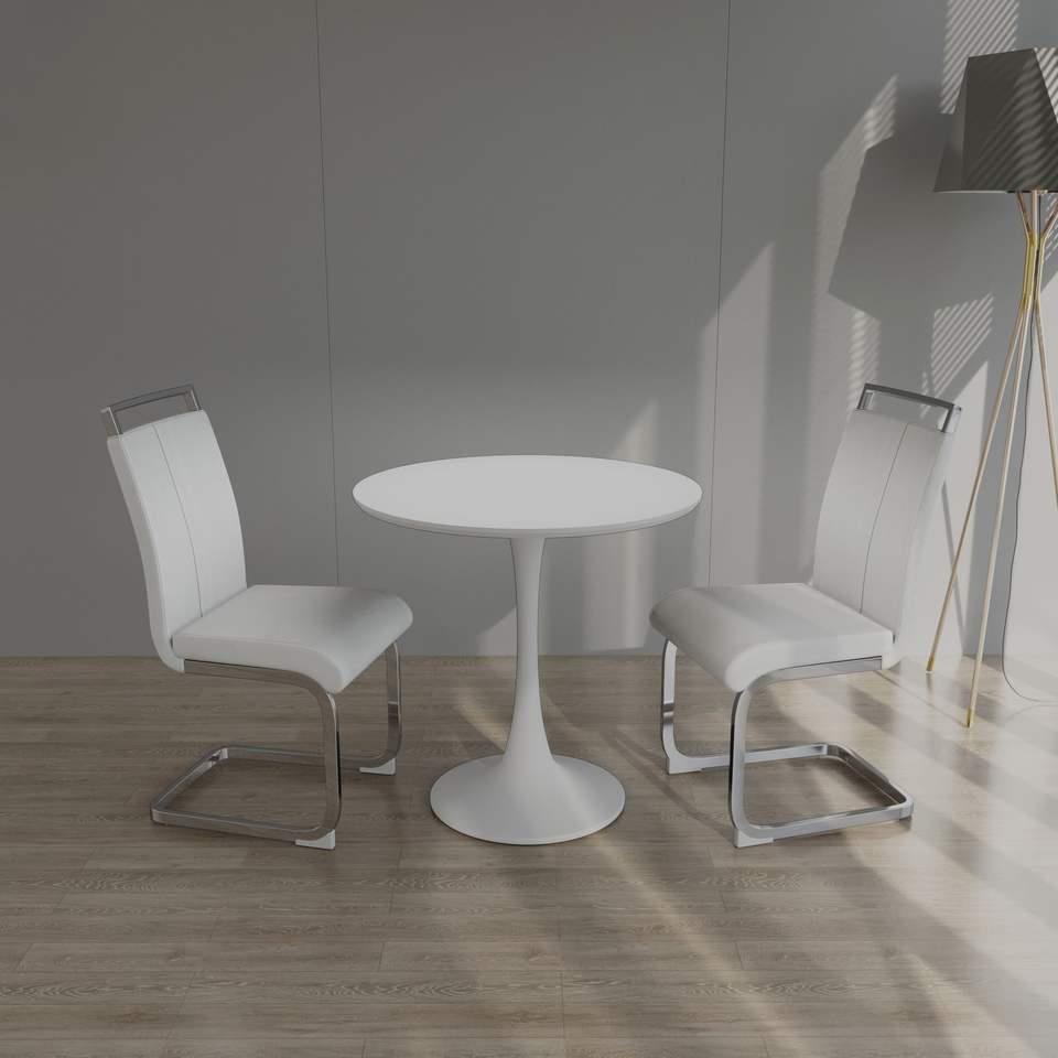 Table à manger Tulip blanche de 31,5 po pour 2 à 4 personnes, table de cuisine avec plateau en MDF et base grise, élégante et peu encombrante
