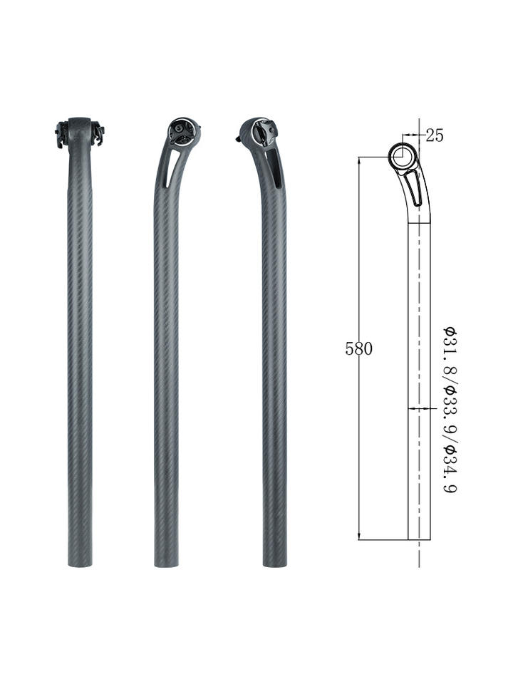 31.8/33.9/34.9 580mm populaire vélo pliant tige de selle en Fiber de carbone 5 °/25 ° arrière flottant tige de selle vélo de route Tube de selle