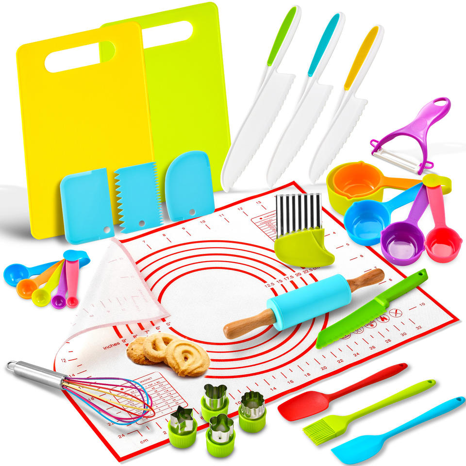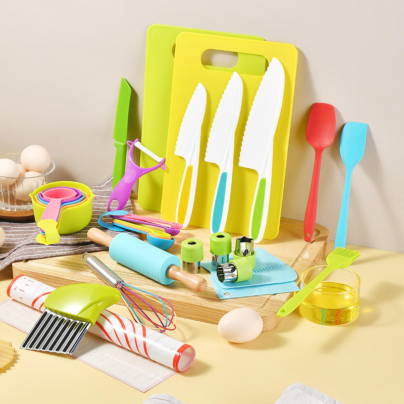 Ensemble de 31 ustensiles de cuisine pour enfants, couteaux en plastique, outils de pâtisserie DIY pour fruits, kit d'alimentation complémentaire, aventures culinaires créatives