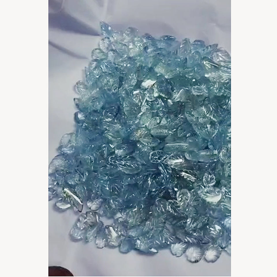Keyword:Natural Aquamarine leaf, Carved leaves Aquamarine loose gemstone
