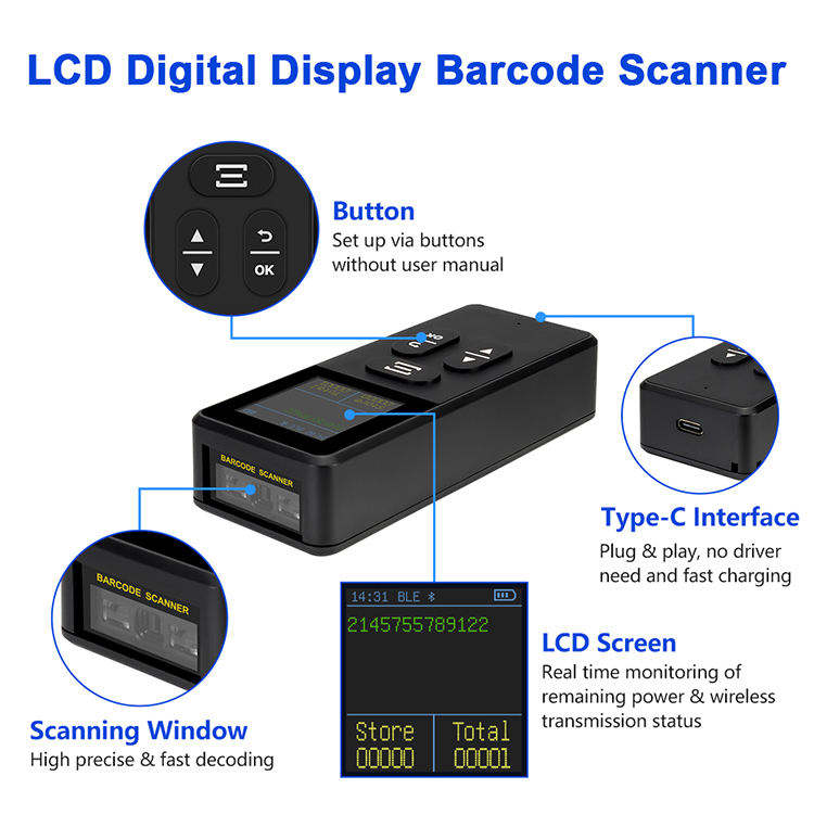 Lecteur de codes-barres portable mini BT 3100 avec capteur CMOS USB 1D 2D QR Code en stock
