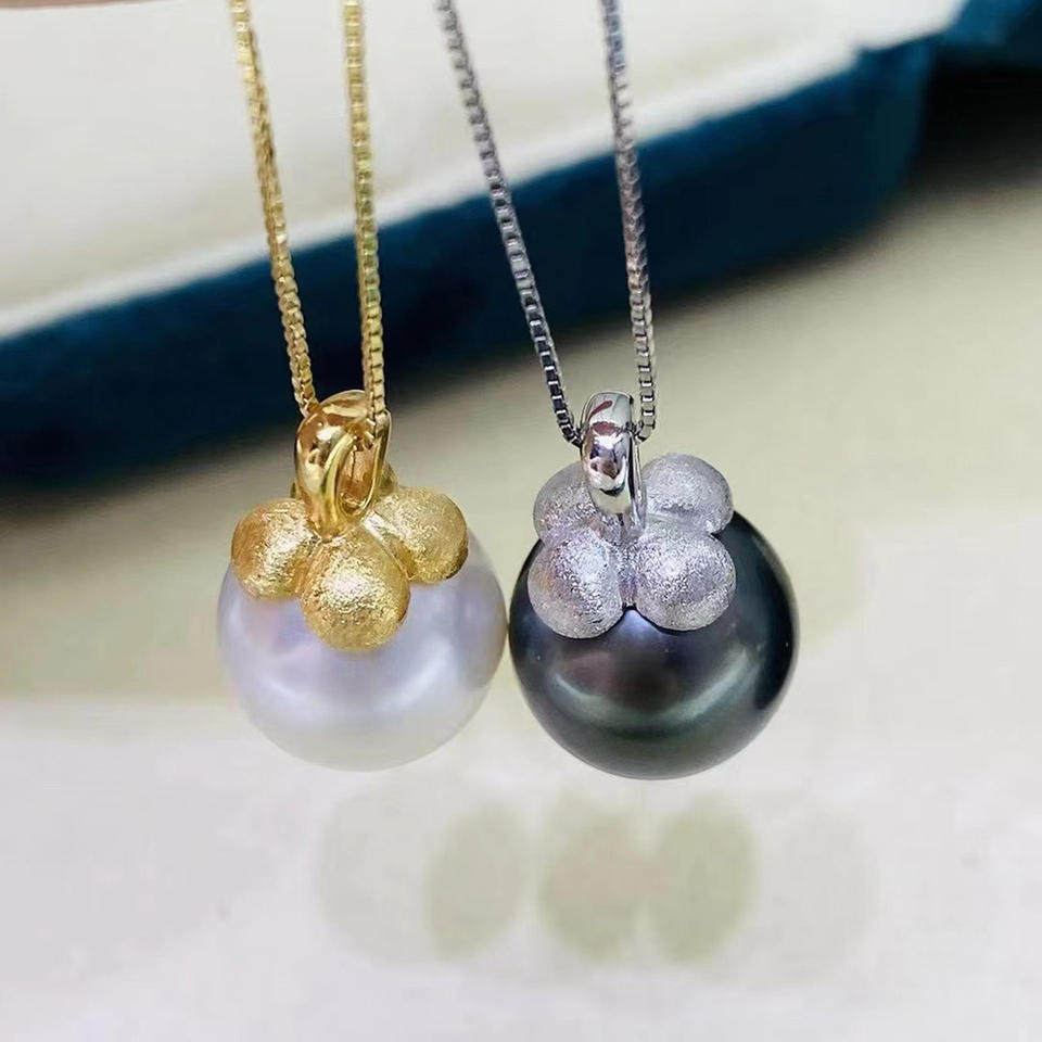 31115 DIY Necklace Pendant with 10-13mm Round S925 Silver Beads Persimmon Style Empty Stand Pearls Accessory Accessories