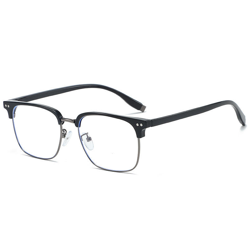 Lunettes de vue rétro demi-cerclées 31132, rectangulaires, noires, avec verres PC anti-lumière bleue, unisexe, pour la vision de près