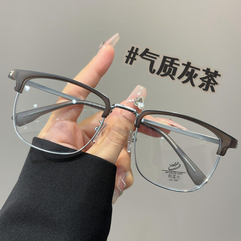 Monture de lunettes optiques demi-cerclées unisexe 31159 en TR90, style sourcil, avec verres PC anti-lumière bleue, taille moyenne, forme quadrilatère