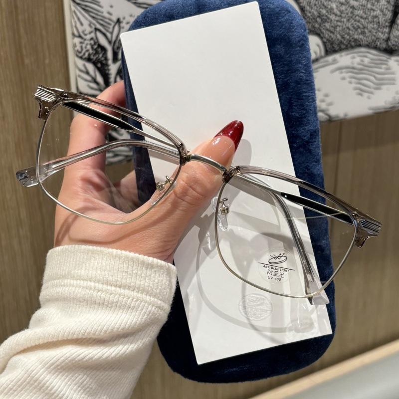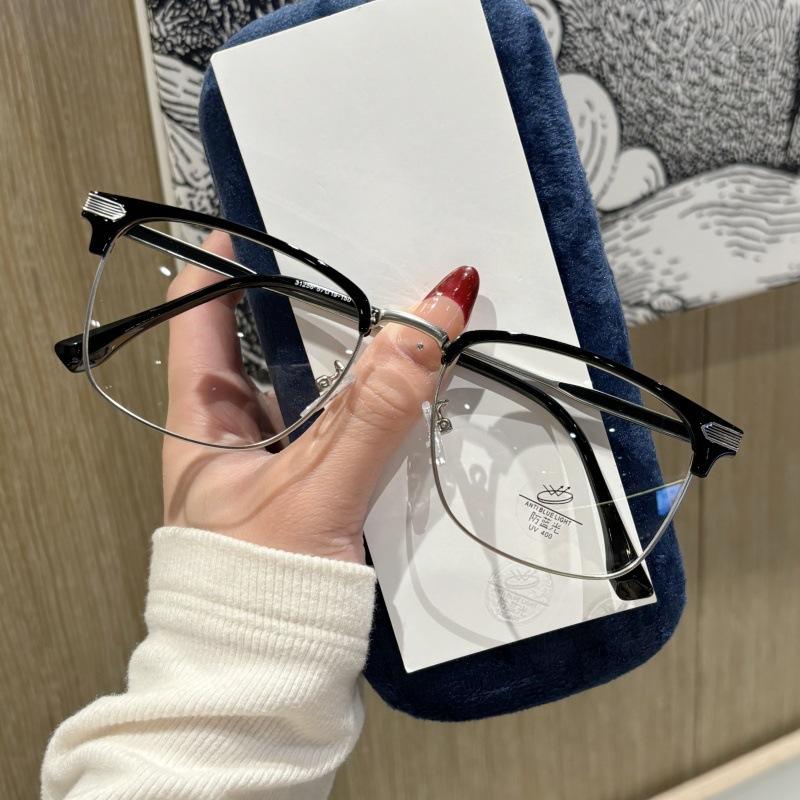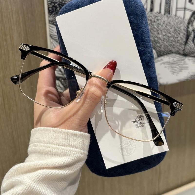 Monture de lunettes optiques demi-cerclées 31256 unisexe, verres PC, protection anti-lumière bleue, taille moyenne, forme quadrilatère